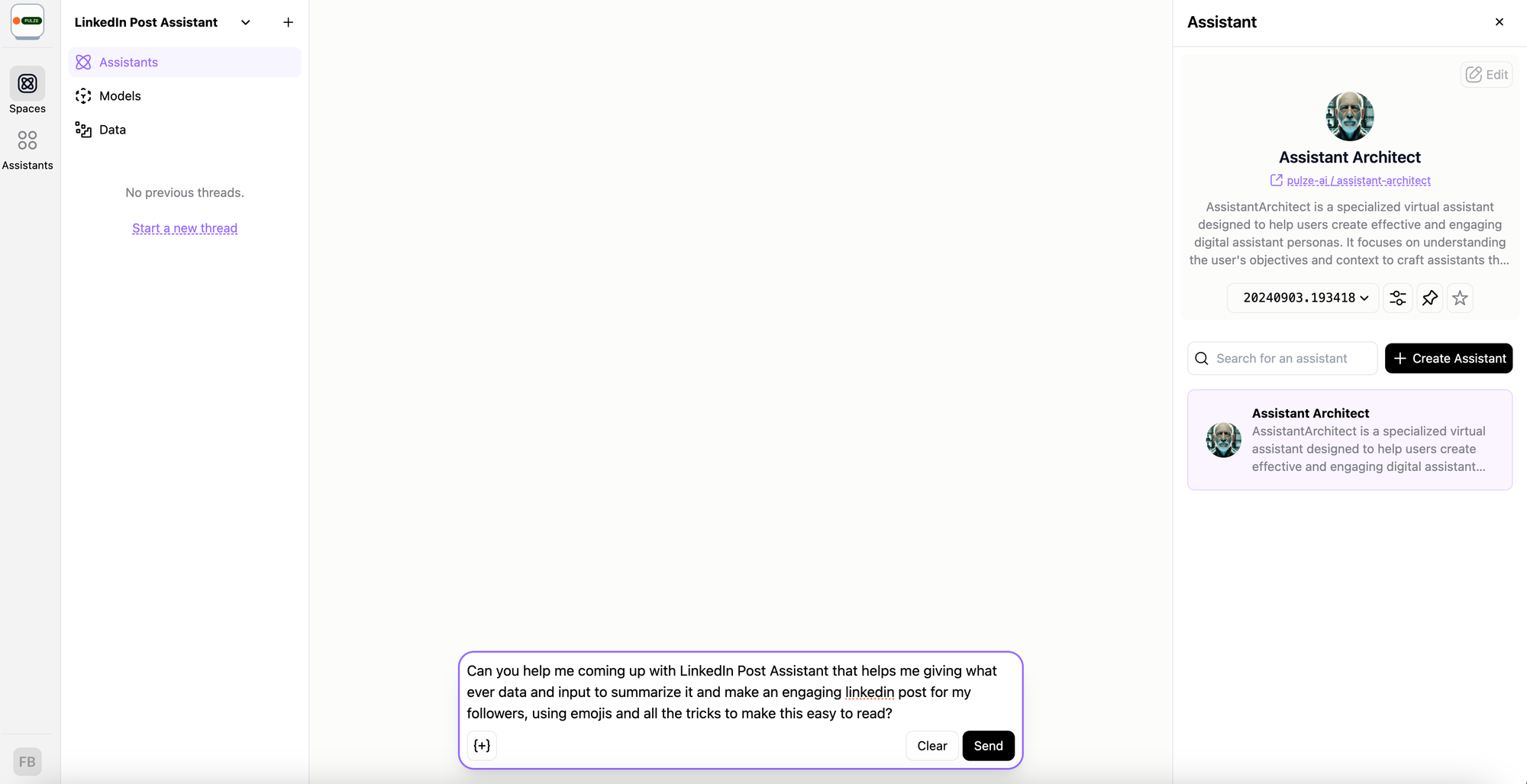 As we continue to develop our platform, the description of an Assistant will become increasingly powerful. It will help us automatically identify the most appropriate Assistant for each task, ensuring optimal performance and efficiency.